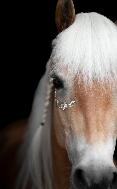 Tijdens een blackshoot maken we foto’s in een deur opening. Deze is het liefste 2 meter breed, twijfel jij of jullie opening groot genoeg is. Stuur mij gerust een foto, ik denk graag mee. Het is fijn als de achtergrond donker is dus dat lampen uit gaan en/of eventuele ramen afgeplakt worden met een vuilniszak. Zo krijgen we nog mooiere resultaten. Ik heb allerlei spullen om jouw paard af te leiden. We laten hem rustig wennen zodat we de ontspannen lieve en stoere blik kunnen gaan vangen!